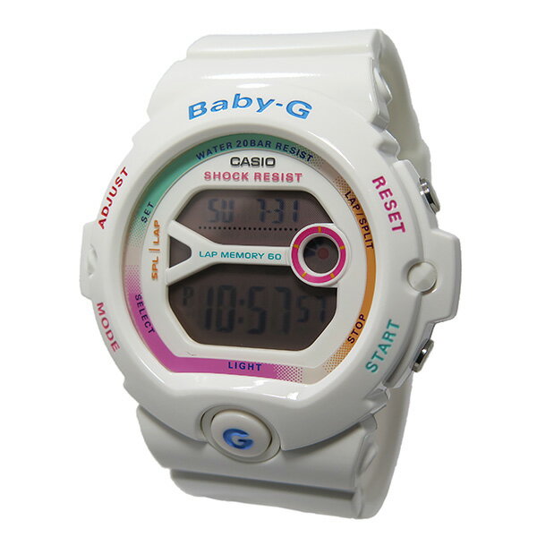 カシオ ベビージー Baby-G クオーツ レディース 腕時計 BG-6903-7C ホワイト機能性とファッション性を追求した個性的なデザインラップ計測機能を充実させ、60本のメモリーが可能なストップウオッチ機能を搭載したランナー向けのBABY-G「BG-6900 〜for running〜(フォー・ランニング)」から、ランニング中の気分を高揚させるNewカラーが登場。